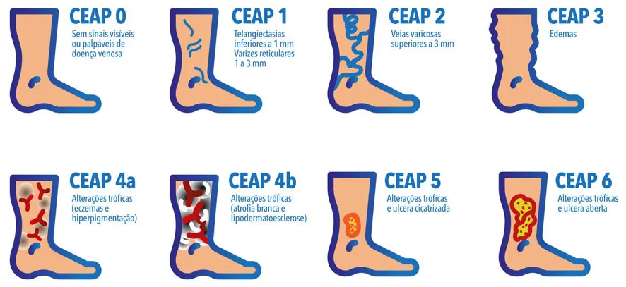 CEAP 0= Sem sinais visíveis ou palpáveis de doença venosa